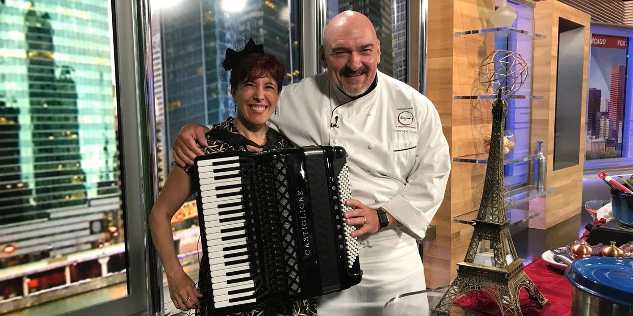 Photo: Me and chef Dominique Tougne of Chez Moi at a Bastille Day promo on Fox Chicago!